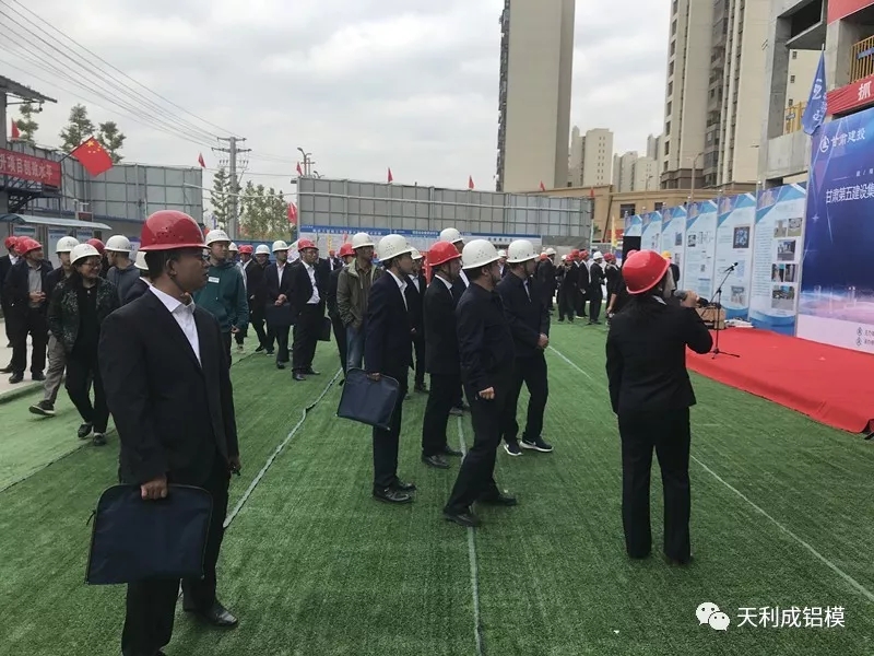 甘肅第五建筑集團(tuán)總經(jīng)理馮總講話指出:現(xiàn)有的鋁合金模板體系,不僅可以取消混凝土墻免抹灰,配合整體現(xiàn)澆外墻等建造技術(shù),還可以全面取消內(nèi)外墻抹灰,減少濕作業(yè);混凝土墻柱表面經(jīng)過局部處理后可直接進(jìn)行裝修施工,徹底杜絕傳統(tǒng)工藝下抹灰層空鼓、開裂等質(zhì)量通病,使出席觀摩會(huì)的人員對(duì)恒順·錦潤(rùn)悅府項(xiàng)目使用材料、施工工藝、驗(yàn)收標(biāo)準(zhǔn)等有了清晰地認(rèn)識(shí)。