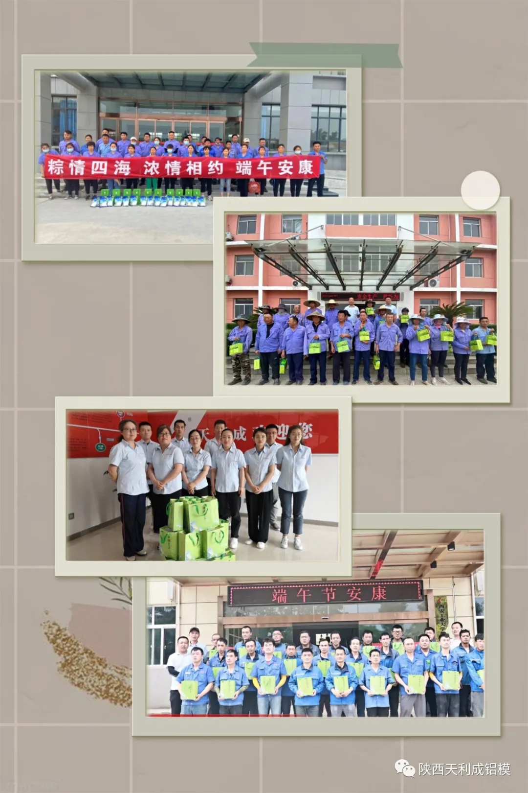 值此端午佳節(jié)到來(lái)之際,向全體員工及員工家屬致以節(jié)日的祝福和慰問(wèn)!感謝全體家人長(zhǎng)期以來(lái)的辛勤付出及對(duì)天利成企業(yè)各項(xiàng)工作的支持!在此,代表公司向您及家人致以節(jié)日的問(wèn)候和美好的祝愿,向節(jié)日期間仍然奔赴在全國(guó)各地的家人道一聲:您辛苦了!