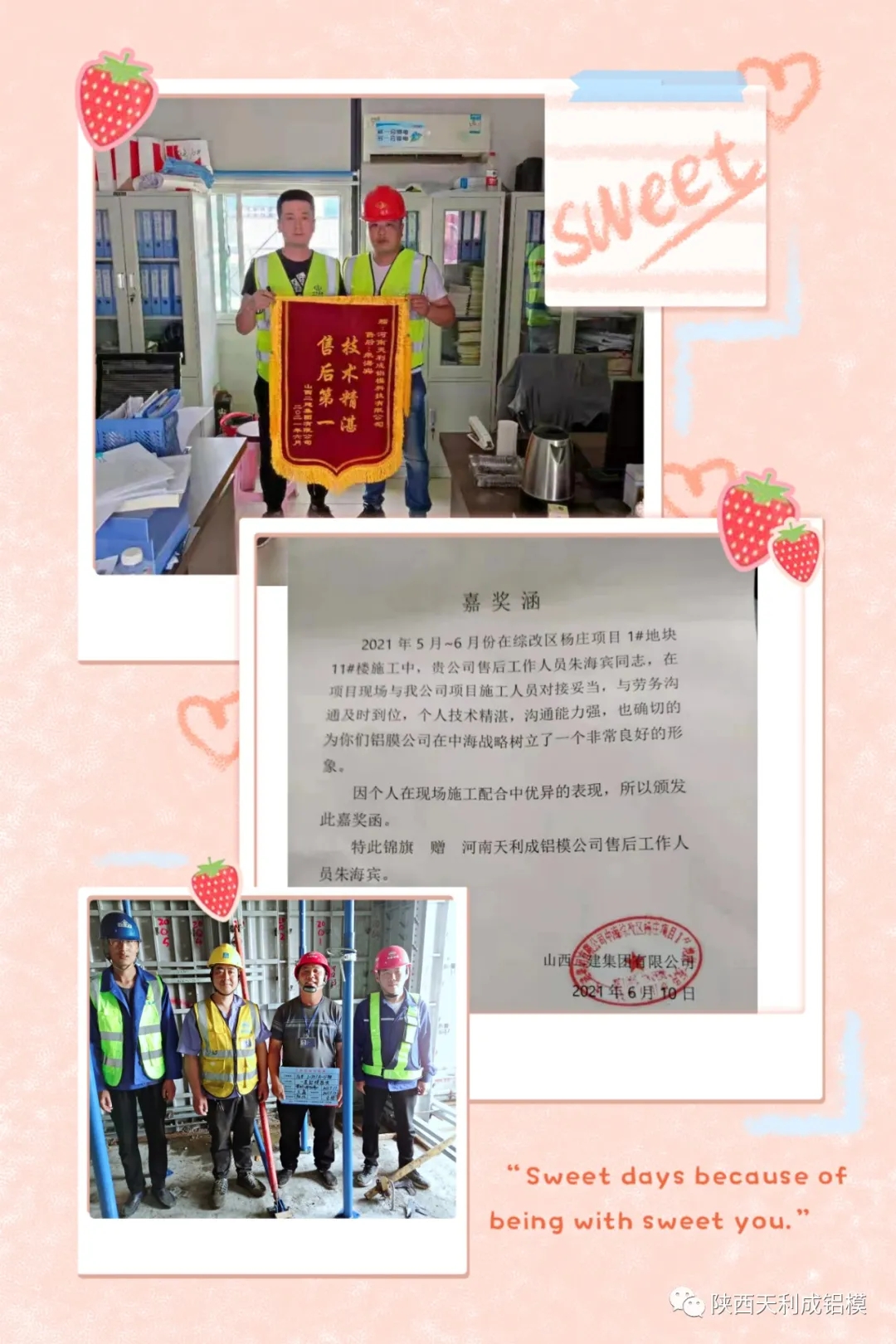 爬架事業(yè)部售后團(tuán)隊(duì)從2人組建至今20余人,首次服務(wù)中天西北御西湖項(xiàng)目,在服務(wù)過(guò)程中由工程主管楊均平及售后主管張慶春對(duì)大家進(jìn)行現(xiàn)場(chǎng)指導(dǎo)及理論培訓(xùn),長(zhǎng)期駐扎工地,只為客戶及公司交一份滿意答卷,最終以精湛的技術(shù)服務(wù)及現(xiàn)場(chǎng)安全管理,贏得客戶一致好評(píng),在今后爬架事業(yè)部家人再接再勵(lì),提高客戶的滿意度,安全優(yōu)質(zhì)高效的完成公司交付任務(wù)。