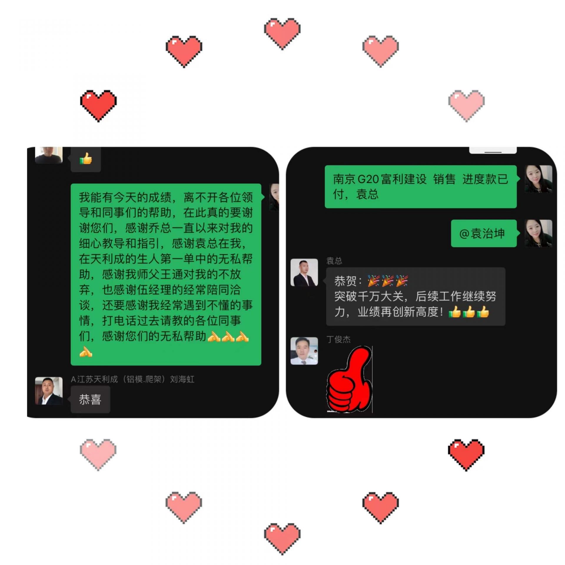 皇天不負有心人,次月接到了一通電話,讓她瞬間激動萬分,南京G20的客戶向她推薦了其他客戶要用鋁模,抓緊洽談,激動萬分的她第一時間聯(lián)系到喬總,請教具體對接流程,后安排了伍經(jīng)理陪同一起去項目上洽談。有這樣的家人,相信不是她一個人在戰(zhàn)斗,一開始這個項目覺得簽單很穩(wěn)妥,但通過后期洽談決議,最終未能簽訂,這次打擊對她來說真的很大,從滿懷信心到失望透頂。但她并沒有灰心,很快在團隊的鼓勵中很快調(diào)整過來,于是主動提出繼續(xù)跟進合肥市場。