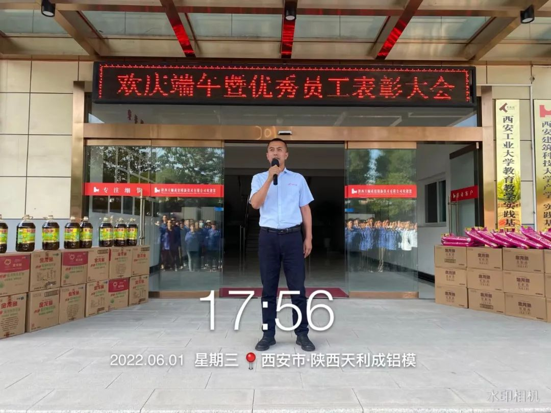 當端午遇上兒童節(jié),注定與“粽”不“童”。6月1日下午,陜西天順成、河南天利成、江蘇天利成,同時召開慶端午暨優(yōu)秀員工表彰大會。在各級員工的熱切期待中,大會在莊嚴神圣的國歌聲中拉開了帷幕!