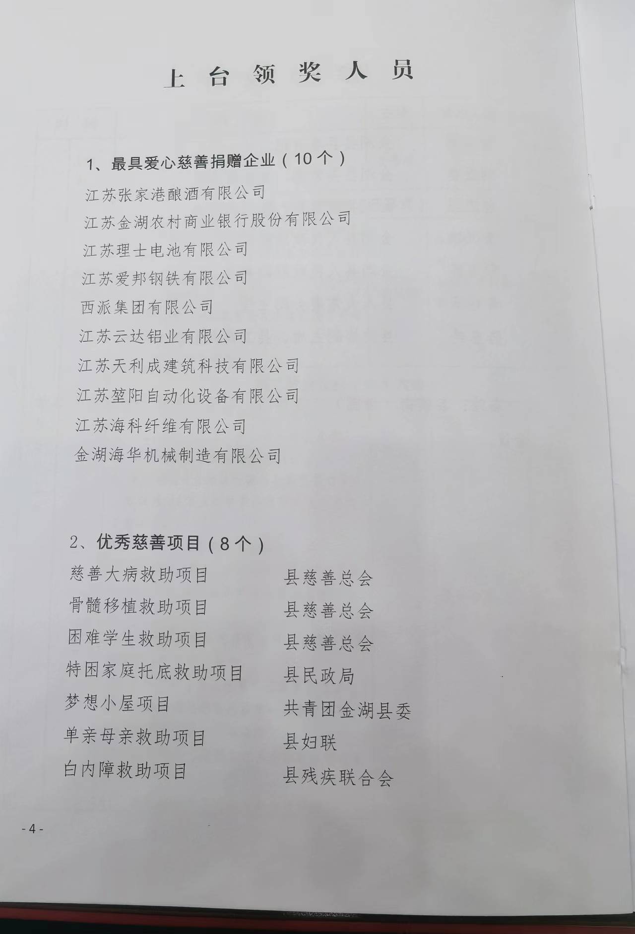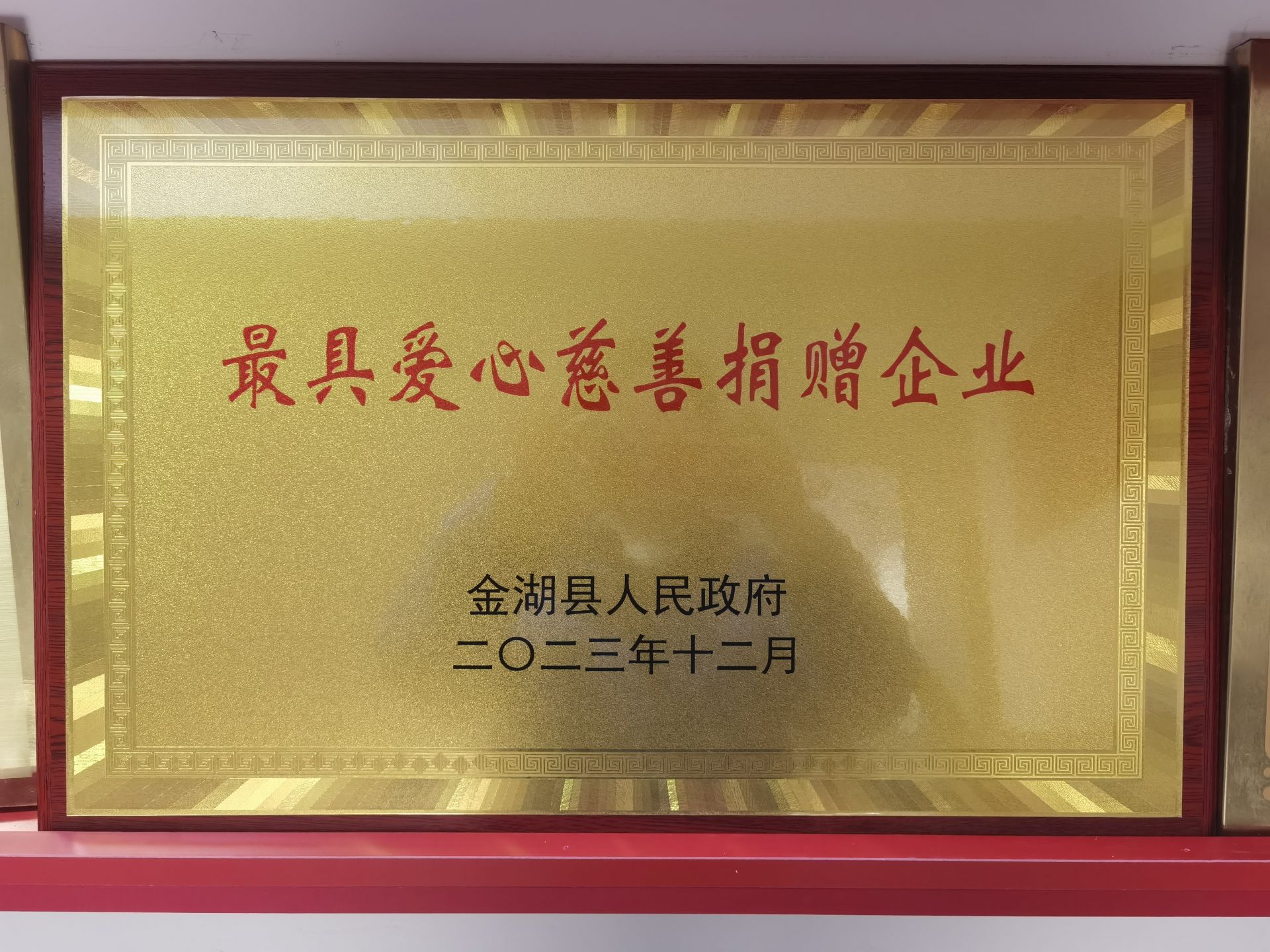 喜報!江蘇天利成榮獲金湖縣最具愛心慈善捐贈單位獎