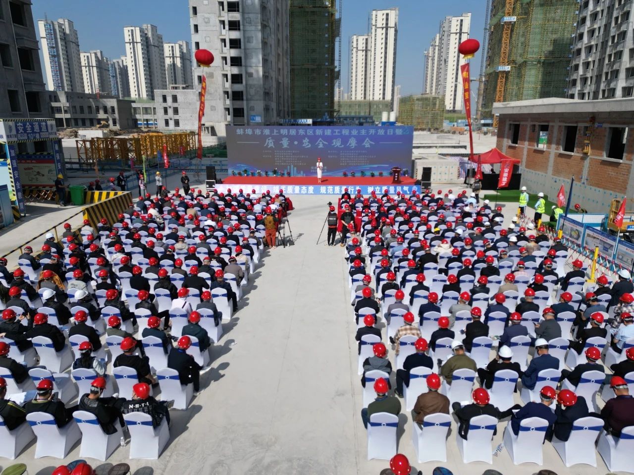 2024年4月18日,蚌埠市淮上明居?xùn)|區(qū)新建工程業(yè)主開放日暨質(zhì)量安全觀摩會(huì)隆重召開,本次觀摩會(huì)現(xiàn)場來自蚌埠市施工單位項(xiàng)目經(jīng)理及技術(shù)人員共計(jì)500余人。