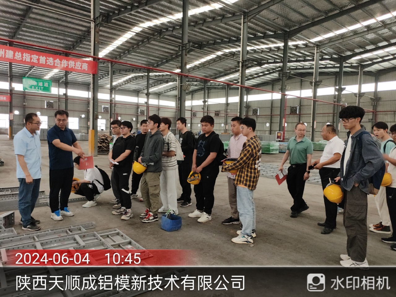 五月薔薇香漸遠(yuǎn),六月盛夏正當(dāng)時(shí)。為進(jìn)一步促進(jìn)校企融合,實(shí)現(xiàn)企業(yè)人才儲(chǔ)備,同時(shí)為學(xué)生提供實(shí)踐理論知識(shí)平臺(tái)。6月4日上午,西北工業(yè)大學(xué)土木工程專業(yè)(鋁模技術(shù)方向)陳教授、常主任及10多名外國留學(xué)生一行30余人,走進(jìn)天利成企業(yè)觀摩學(xué)習(xí)交流。天利成全體員工對(duì)西北工業(yè)大學(xué)師生蒞臨觀摩交流表示熱烈歡迎!
