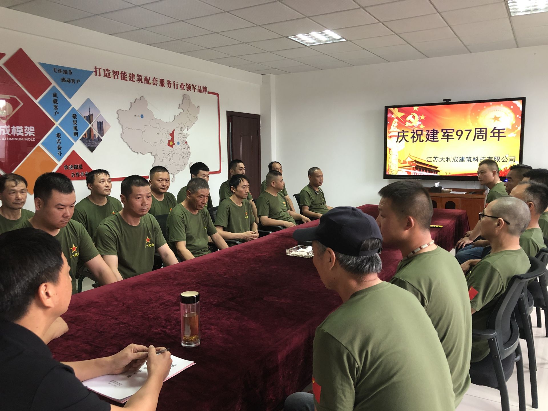 永葆軍人本色,再寫奮斗篇章。“我是一個(gè)兵,愛國愛人民,革命戰(zhàn)爭考驗(yàn)了我,立場更堅(jiān)定……”,在慶祝中國人民解放軍建軍97周年的光輝時(shí)刻,嘹亮的軍歌于江蘇天利成建筑科技有限公司會議室響起,慷慨激昂的旋律流入每個(gè)人的心底,崇敬之情油然而生。8月1日下午,江蘇天利成建筑科技有限公司舉辦“慶祝建軍97周年”退役軍人活動(dòng),19名退役軍人參加活動(dòng),共同懷念曾經(jīng)在部隊(duì)的青春年華。