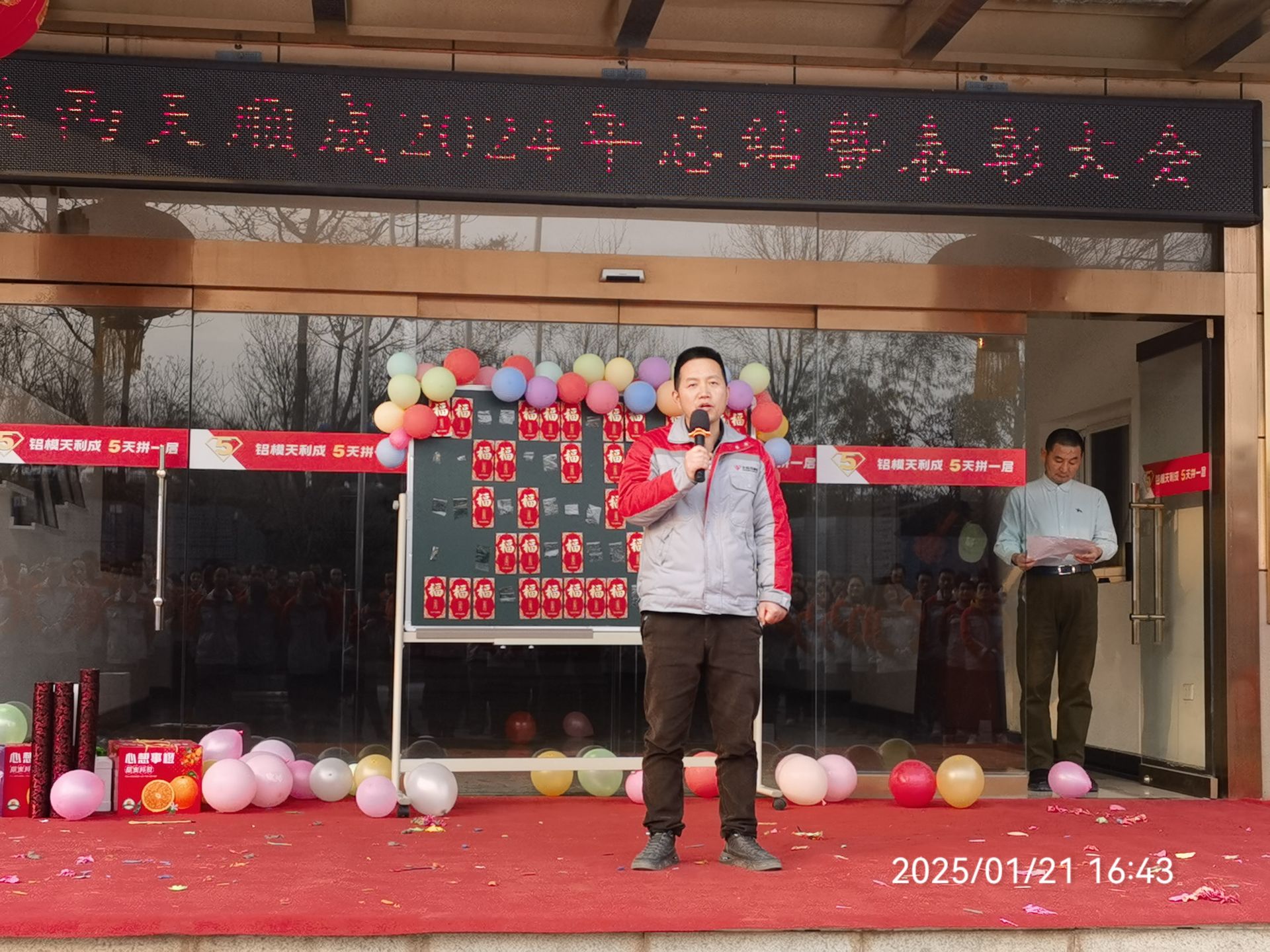 總結(jié)剖析,謀定而動(dòng)。為進(jìn)一步提升企業(yè)管理,強(qiáng)化責(zé)任擔(dān)當(dāng),表彰優(yōu)秀管理人員及十年功勛老員工,更好地梳理過(guò)去一年的工作,以更加清晰的思路,全面推進(jìn)企業(yè)2025年各項(xiàng)工作再上新臺(tái)階。1月21日下午,陜西天利成、河南天利成、江蘇天利成召開(kāi)2024年度年終總結(jié)表彰大會(huì),全體員工及各級(jí)管理人員共同出席本次大會(huì)!